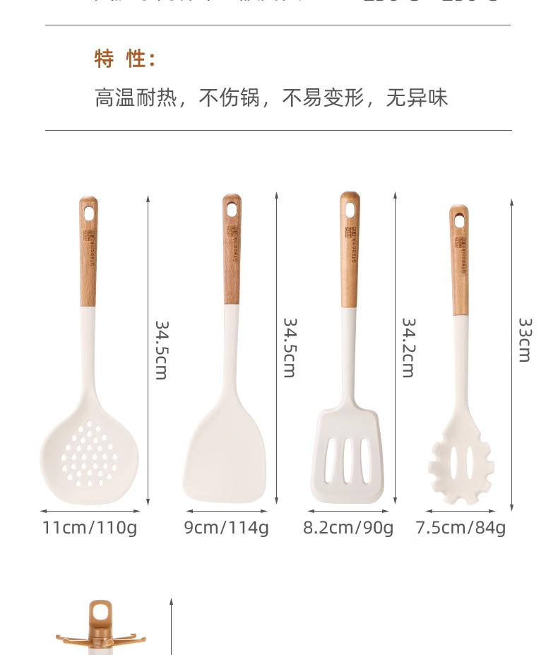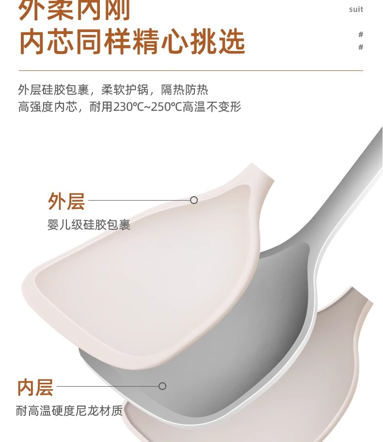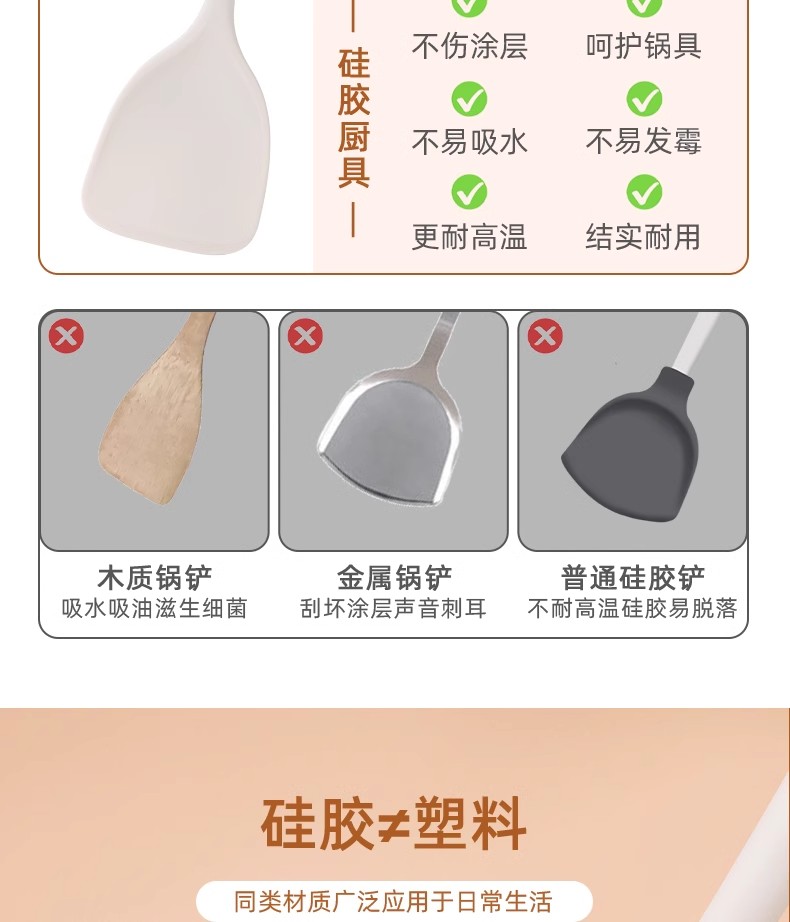 | 商品名称 | 硅胶锅铲不粘锅专用耐高温炒菜铲子煎铲汤勺漏勺饭勺厨具套装 |