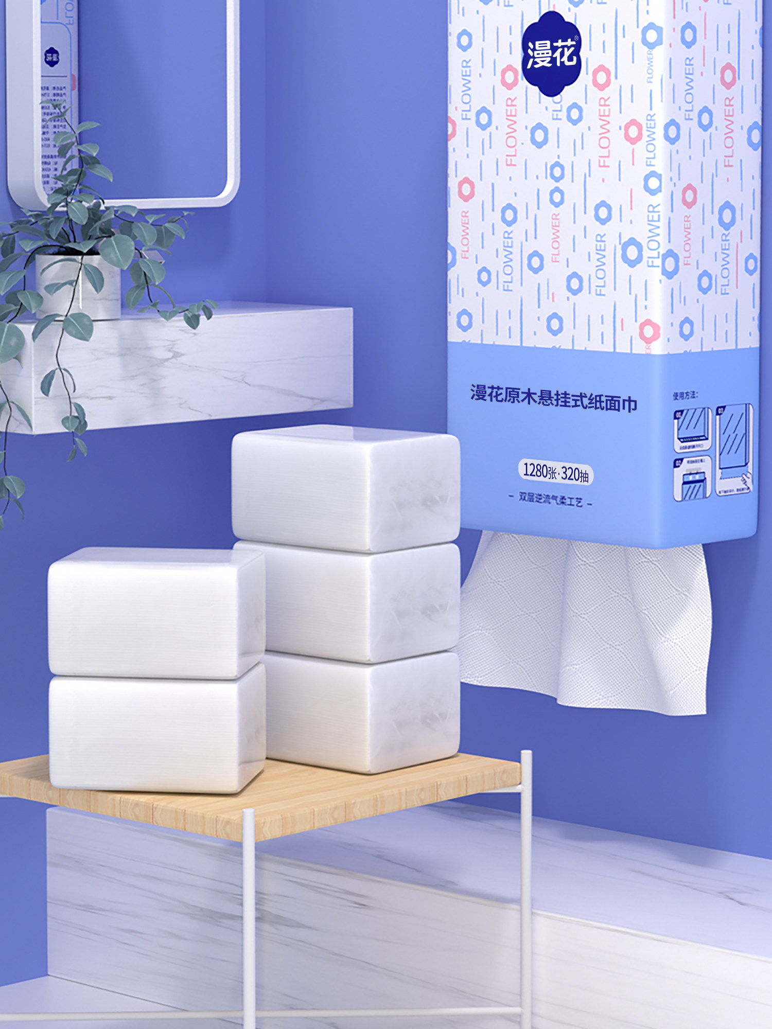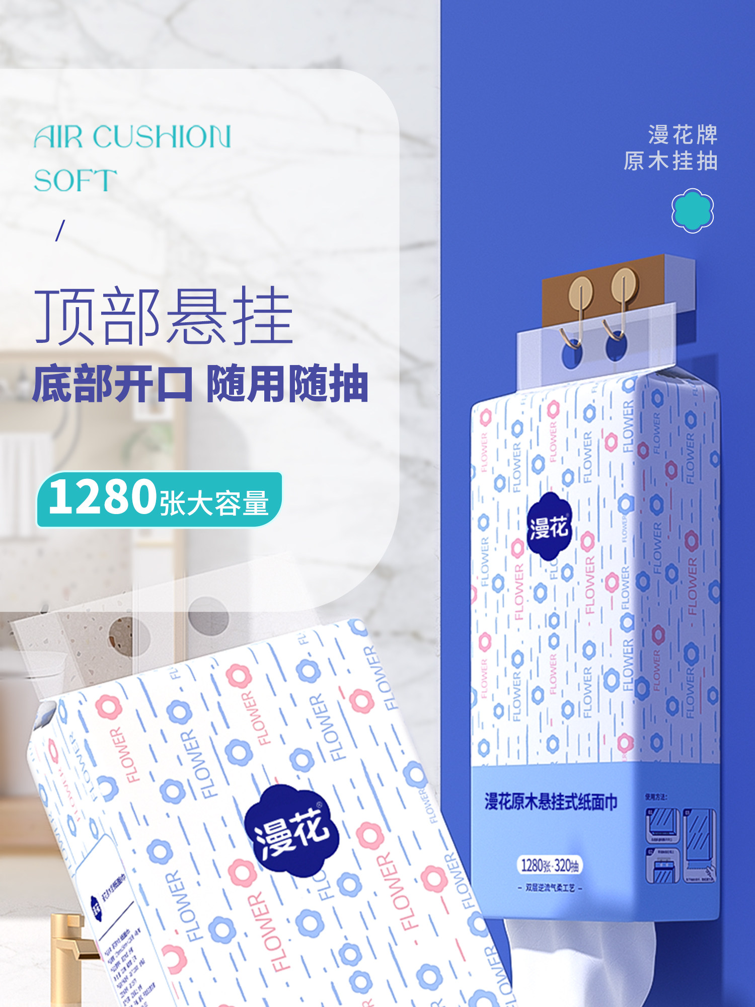 | 商品名称 | 漫花抽纸悬挂式卫生纸家用实惠装纸巾纸抽整箱餐巾纸大包厕纸擦手 |